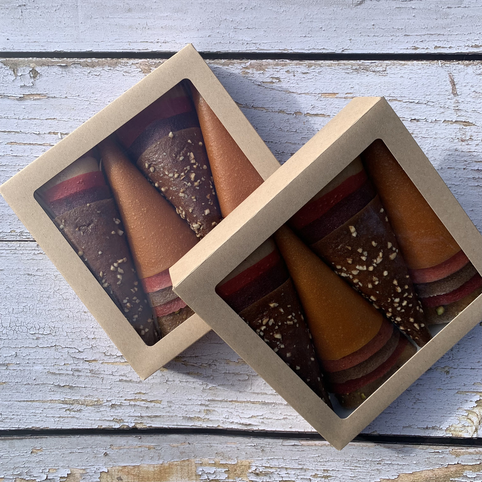 Mod de consum: se pot savura ca atare, rupe bucăți mici în iaurt sau smoothie, umple cu mascarpone sau budincă, sau folosi ca con de înghețată. La rece devin crocante, la cald moi, pentru textură și savoare versatilă.